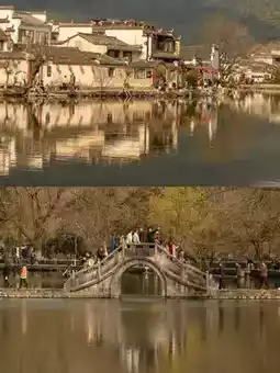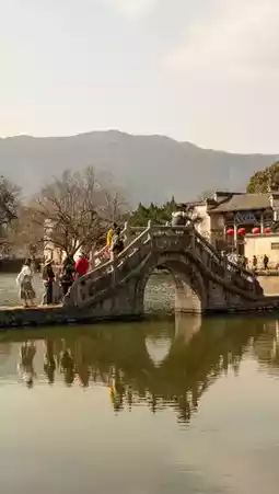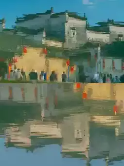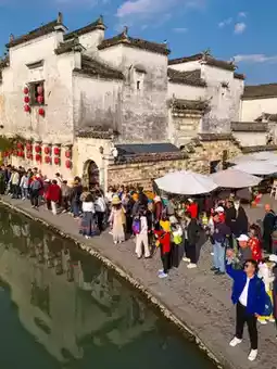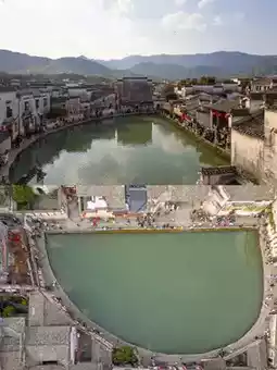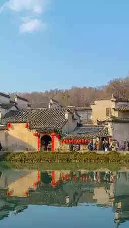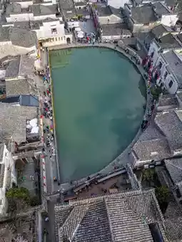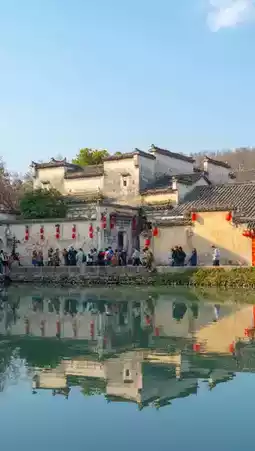 ❶South Lake: Excavated in the 35th year of the Wanli period during the Ming Dynasty, it forms the core of the village's water system, showcasing the ecological wisdom of ancient Huizhou people. The lake features an arc-shaped stone embankment with a bridge in the middle, lotus flowers and willows along the banks, and white walls with black tiles reflecting in the water like a painting.