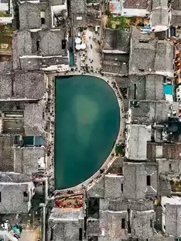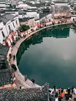 The "heart" of Hongcun, a crescent-shaped pond reflecting horse-head walls, lanterns light up at dusk, perfect for shooting ancient-style portraits. You can join tour group explanations to learn about the Wang family history.