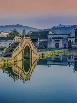 | A Huizhou ancient village hidden in a painting, with mountains, water, and bridges reflected like stepping into an ancient painting. 【Transportation】