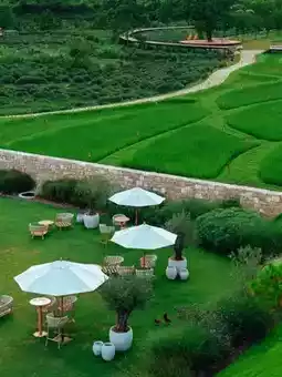 An infinity pool perfectly blending with the terraced fields✨