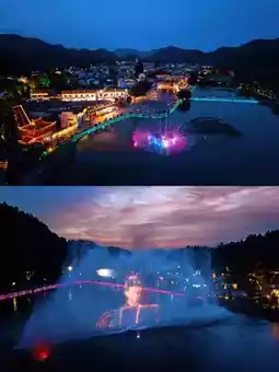 👉🏻 On Mingjing Lake, the 3D water screen projection is dreamlike! The legendary stories of Huizhou merchants vividly unfold before your eyes—immerse yourself and feel the unique charm and beauty of Huizhou