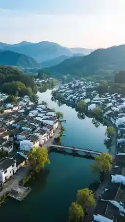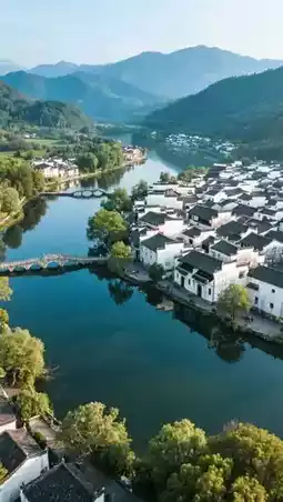 This is a wise ancient village with a "**Bull-shaped Water System Layout**" — the mountain is the bull’s head, trees are the horns, bridges are the legs, houses are the body, and water channels are the intestines, flowing unceasingly for a thousand years---