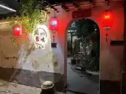 Hengchun at night exudes a serene and enchanting atmosphere, illuminated by the soft glow of traditional black-and-white Hui-style houses in Anhui Province. The warm yellow light of lanterns reflects on the stream flowing through the village, accompanied by the gentle sounds of crickets and a light breeze. Some homes still emit faint smoke from kitchen stoves, while villagers close their doors to rest after a day's work. The starlight above the mountains behind the village adds a romantic and mysterious touch. Hengchun at night is a picture of simplicity and tranquility, evoking a profound sense of warmth and relaxation.