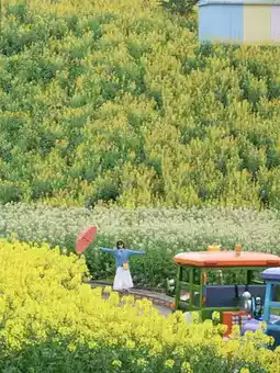 Vast fields of dreamy colorful rapeseed flowers, colorful tractors, sightseeing trains 🚞, Ferris wheels 🎡, carousels 🎠, and various other amusement facilities 🎢