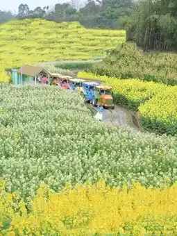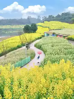 There are large rapeseed flower fields, perfect for taking beautiful pictures! Few crowds and beautiful scenery. You can take photos anywhere in the scenic area, and then stroll around, have a meal, and go home!