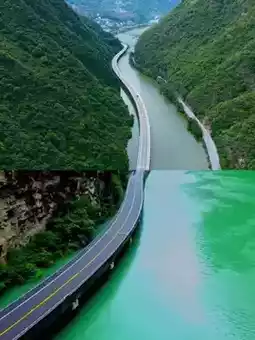 Scenic Beauty: The highway, resembling a jade belt or a giant dragon, winds through the mountains and rivers, creating a beautiful ecological landscape with the surrounding green mountains, clear waters, clouds, mist, and villages. It's a popular spot for online influencers.