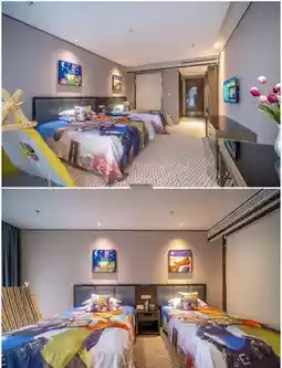 🛏️ The kids' theme rooms are especially delightful, featuring ample space adorned with tents, plush toys, and playful bedding, wall decorations, and tent patterns—guaranteed to spark joy for little guests.