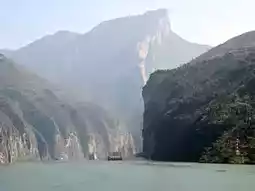 **The Three Gorges** along the Yangtze River in China is a grand canyon renowned for its breathtaking landscapes of towering mountains and flowing rivers.