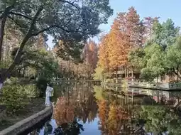 3. Lakeside Metasequoia · Brown Charm Secret Realm: Distributed along the west bank of the artificial lake, from mid-to-late November to December, the metasequoia leaves gradually turn ancient bronze-brown. Wooden boardwalks are set up within the forest, allowing you to walk deep inside and see the dappled light and shadows formed by the sun shining through the metasequoia branches and leaves on the ground. The lake reflects the graceful silhouettes of the metasequoias, making every casual shot a 'forest-themed autumn blockbuster,' quiet and healing.