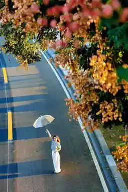 4. Outfit Suggestion: Wear a long, flowing dress (light colors or Morandi colors are best). When the wind blows the skirt, capture it in the same frame as the falling golden rain tree seeds, creating a lively and gentle look, instantly making you the star of an autumn photoshoot.