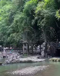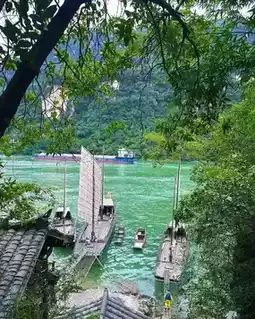 The creek water is as clear as jelly! The black-awning boat slowly glides by, a Tujia girl stands at the bow singing, her voice echoing through the valley. There are also monkeys playing in the forest (remember to keep your snacks safe, they are very clever).