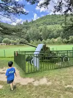 Seeing all kinds of real cannons and tanks made Xiao Zhi super happy.