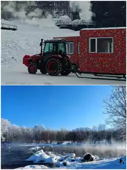 Morning: Set off early to Kulbin and enjoy the winter scenery of Lesser Khingan Mountains along the way. After arriving, it feels like being in a dreamland. The trees on both sides of the river are covered with white and crystal rime. The sunlight shines through the branches, casting fine rays of light, which is like a dream. Take a stroll, breathe the cool and pure air, and feel the wonders of nature.