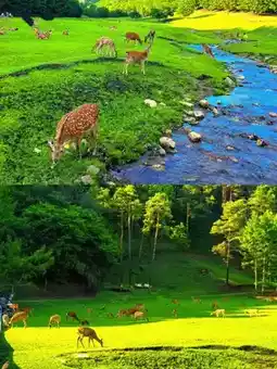 - **Highlights**: Semi-wild deer herds live freely, interact with sika deer in the green valley, and take a photo to create a forest blockbuster.