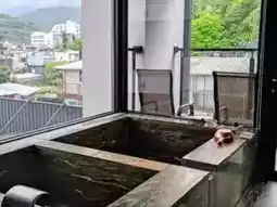 The Mountain View Room has a large area and a great view. In addition to the sofa and coffee table, the most satisfying thing about the 36-square-meter space is the double hot spring pools on the outdoor terrace. The slate hot spring pools are quite large, and the spring water is rich in iron and rust-brown. It is a great enjoyment to take a bath facing the beautiful view outside the window!