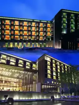As soon as I got out of the car, the hotel's modern yet elegant architectural style caught my eye. It's located in the heart of the Jiaosi hot spring area📍, surrounded by picturesque natural scenery. You can see green mountains and trees everywhere, completely isolated from the hustle and bustle of the city, as if you've stepped into a paradise. It's also very close to Jiaosi Train Station, making it super convenient to get around, even for independent travelers.