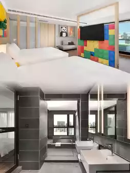 The Noah's Ark themed room is a kid's paradise! The room is decorated with tens of thousands of building blocks shaped into various animals. As soon as they enter, children's eyes light up, and they can't wait to start exploring🧐. A building block gift box is also included, keeping the kids entertained and giving parents a moment of peace 😌. The room's wooden tones paired with warm, light-colored materials create a cozy and comfortable atmosphere. There's also a sunken hot spring bath – perfect for a relaxing soak after a day of fun!