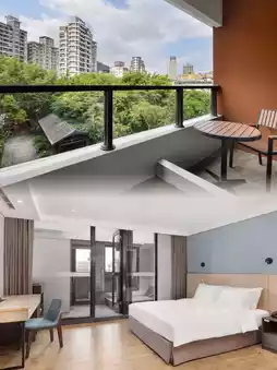 The hotel is located right at the source of Jiao Hsi hot springs, surrounded by lush greenery, and close to Tangweigou Park. Taking a morning stroll and enjoying the fresh air is so relaxing~ It's also not far from the city center, making it super convenient for getting around and finding food 🚗