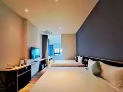 The bed is a Simmons mattress, and there is a cute smart speaker that can chat with me~