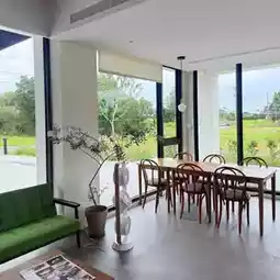 This minimalist white building is quietly nestled in the middle of rice fields in Yuanshan Township, Yilan. The first floor serves as a dining area, while the second and third floors are accommodations featuring a mix of Japanese and Nordic styles. Surrounded by lush greenery, the moment you step inside, you feel instantly relaxed.