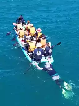 The dragon boat we used was incredibly large, capable of seating 10-12 people. Later, I saw the instructor's aerial photos and saw that it actually held 12 people, with an instructor swimming behind us, keeping a close eye on safety.