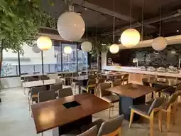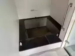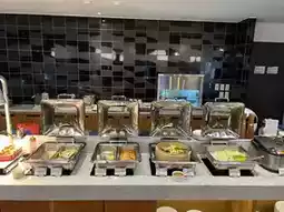 The parking lot entrance and exit are a bit small, so be careful when parking. The lobby is spacious and tall, making it feel comfortable. The restaurant in the back, which is usually a social area, serves tea, snacks, popsicles, and fruit 24 hours a day. It's recommended to check it out upon entering the hotel, as supplies are limited.