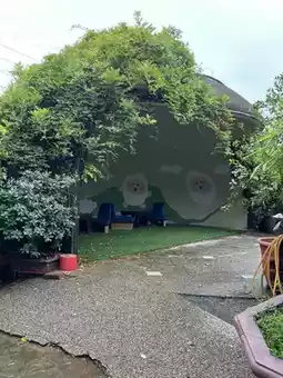 The arch and wooden frame of the main entrance remind me of a country bakery. There's outdoor seating in the garden to the right, where I love sipping free red bean drinks and searching for loot. The park's lawns, lotus pond, and treehouse create a lively atmosphere, and you can even occasionally encounter performances or family activities.