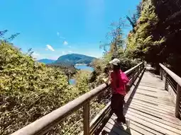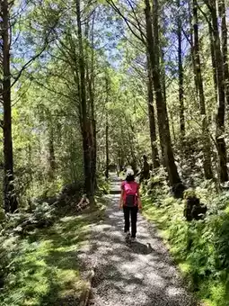The trail around the lake spans about 4 kilometers and was converted from an old logging railway. A portion of it has been certified as the world's first 'Quiet Trail.' 🌳