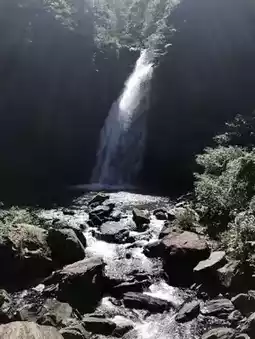 When you reach the waterfall, the view is breathtaking. A ribbon of crystal-clear water cascades gracefully into a cool, emerald pool surrounded by mossy rocks and vibrant ferns. The air feels crisp and rejuvenating, with mist drifting through the sunlight like a soft veil. It’s a spot that invites you to pause, breathe, and simply take in the beauty of nature’s rhythm.