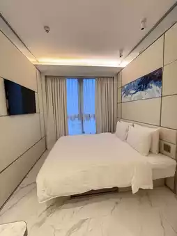 The exterior is an elegant white Western-style building, while the interior blends modern simplicity with European romance.