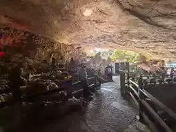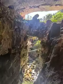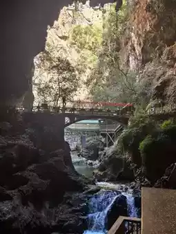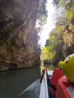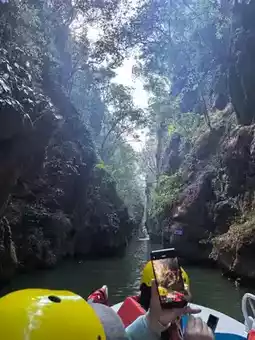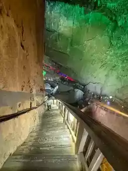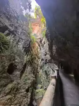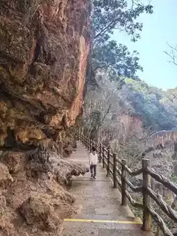 We went to Shilin on the first day and came to Jiuxiang on the second day. Although the stone forest is unique, it is not enough to make people linger. But "Jiuxiang" [Congratulate][Congratulate][Congratulate] gives people a richer experience: canyons, deep pits, rivers, waterfalls, and endless caves, winding stone steps, stairs, and occasional dripping water from the stone walls... (it really makes people experience what is considered a "different world" [Love][Love][Love]) I have seen many people introduce that you only need to buy tickets and cable cars 🚠. Today I brought my children and the elderly all the way down. It was a 3.5-hour experience. If you have elderly and children, I really recommend a package ticket (especially when traveling with elders). The package for two adults and one child is 617. Including the first section of cable car 🚠 (round trip), small boat (smooth), speedboat (slow), the second section of suspended cable car, and shuttle bus. PS: The small train entering the scenic area starts at 11:00 and is very slow, with one train every 30 minutes. We walked directly along the railway track and basked in the warm winter sun for 5 minutes. It felt like there was no need to take the train (the train was free for the time being). I saw other bloggers mention the cable car elevator 🛗, okay (it’s the off-season with few people, so they are not running. You have to climb up and down by yourself, and all the elevators show "fault". Haha, do you believe it?!) There are official free photo taking facilities in the scenic area, "free" shooting and free photos (about 2 cm, basically unclear). If you want the original photo (with frame), it’s 30 yuan/photo. To be honest, I want both. I'm usually lazy and seldom develop photos, let alone buy photo frames. It's nice to have a ready-made one to take home and display (the cave is dark, and with professional photography, fill light, and SLR positioning, the results are indeed better than those taken with a mobile phone) [Chin][Chin][Chin] Finally, I want to say that nothing is cheap in scenic spots, so don't be misled by "lightning avoidance". It is necessary to make traveling with the elderly convenient; it is necessary to make traveling with children less tiring. I wish you all a happy new year, have fun and don't waste your money [Awesome][Awesome][Awesome]