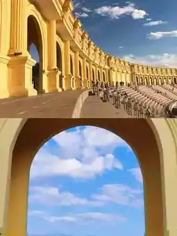 The most romantic spot in Yinchuan, perfect for sunset views. The architecture resembles the Roman Colosseum, with the distant Helan Mountains as a backdrop.