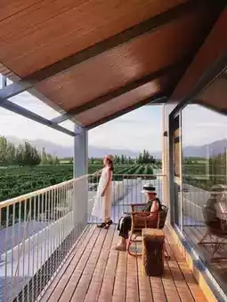 "This time, sitting casually under the eaves, with my mother beside me, the sky still hanging with thin clouds, Helan Mountain in the distance, leaning against the mountain, looking up at the starry sky, with vineyards in front of me, the feeling is wonderful, as if this place all belongs to me, making you feel completely calm."