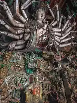 ⓬ Shuanglin Temple: Shuanglin Temple, located in Pingyao County, is famous for its colored sculptures and enjoys the reputation of "Oriental Colored Sculpture Art Treasury". The Thousand-Hand Guanyin and "The World's No. 1 Wei Tuo" colored sculptures in the temple are rare art treasures.