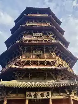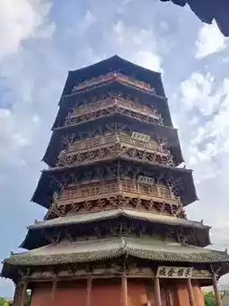 Standing tall under the blue sky, the Yingxian Wooden Pagoda is hailed as the "World's First Wooden Pagoda." Having weathered a thousand years of storms, it remains steadfast, like a giant guarding the northern lands. Approaching the pagoda, its layered eaves resemble wings ready to take flight, and every wooden component showcases the ancient craftsmen's exquisite skills and resolute wisdom.