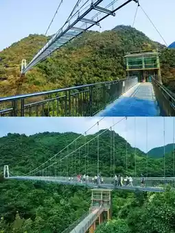 🌉 Sky Glass Bridge: Walking on it is like walking in the clouds, 🚶♂️🌥️ The bottom is transparent, and you can see the mountains and rivers below. If you are brave enough, you can try it, and it's cool to take photos!