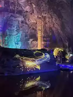 I've never been to a cave before, and it's amazing! 🤯 It's like traveling to another world, warm and mysterious. 🌍 The stones here are in various shapes, and when the lights are on, it's like a natural art exhibition, perfect for taking photos! 📸