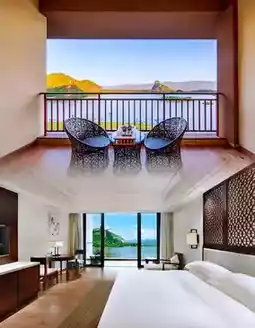 The hotel rooms are thoughtfully designed with a simple yet elegant style, incorporating local elements. The rooms are spacious and bright with complete amenities. Each room comes with a viewing balcony where you can take in the beauty of Swan Lake. In the morning, you can wake up to sunshine on your face and birdsong, feeling the gentle touch of nature.