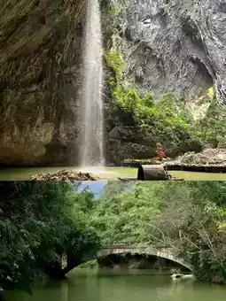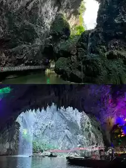 Suggested route: South China's First Sinkhole—Lotus Throne—Heavenly Dragon Drinking Water—Azure Cloud Bridge—Cave Water Screen—Immortal Bridge (Matchmaking Bridge)—White Jade Guanyin