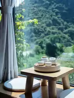 The elegant rooms are located on floors 2-4, each with floor-to-ceiling windows surrounded by mountain forests 🏞️. The air is incredibly fresh, and waking up to misty mountain views in the morning feels like stepping into a fairyland.🍃