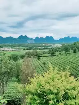 Tea Fun Garden, located in the western suburbs of Yingde City, spans over a thousand acres. From afar, you can see lush green mountains, and up close, tea trees growing side by side. I remember visiting shortly after last year's Spring Festival, and without any prior expectation, I was greeted by a sea of peach blossoms. They were everywhere, near and far, in full bloom—absolutely stunning, leaving me in awe, as if I had stumbled into the legendary Peach Blossom Land. Summer brings a different scene, with clear air, occasional mist, gentle breezes, and vibrant greenery all around.