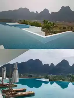 ⛰️The mountain scenery and homestay design are breathtaking, making it highly photogenic📷 – especially the infinity pool on the fourth floor. Next to the lobby is a children's play area with a small slide🛝, books📖, building blocks, and a tent. The property also features a lotus pond🪷 for leisurely walks.