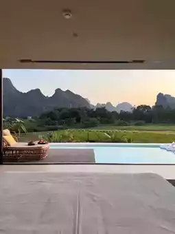| A day at the secluded mountain retreat homestay. The three-story villa has four spacious suites (no elevator). The first and third floors each feature two beds🛏️ (2.2m + 1.5m) – large and very comfortable. The first-floor 🏡 courtyard has a pool and lawn, while the second and third floors each offer a temperature-adjustable soaking tub. The living room is spacious, though the sofa🛋️ has noticeable stains🤦🏻♀️. All faucets🚰 require careful handling as the water pressure is extremely strong.