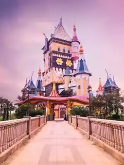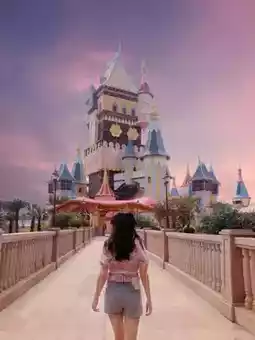 - Dream Castle panoramic view: Walk 100 meters east from the sales office stamp area to the fountain plaza, where you can capture the entire castle and hot air balloons in one frame. On sunny days, the blue sky and white clouds reflecting in the fountain pool are amazing.