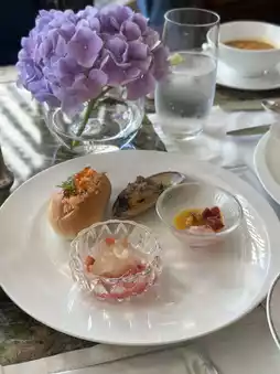 The seafood cold plate selection is very rich, with lobster, bacon, mussels, and scallops, all very fresh. The standard of the sashimi area is also good. The appetizers were full of surprises, with lobster crab meat and salmon roe buns with my favorite fillings; Hamachi ceviche and Scallop crudo with fresh ingredients. The most eye-catching is the fried goose liver with red wine sauce, cooked on site by the master, fragrant; and my favorite super rich lobster soup 🤩🤩.