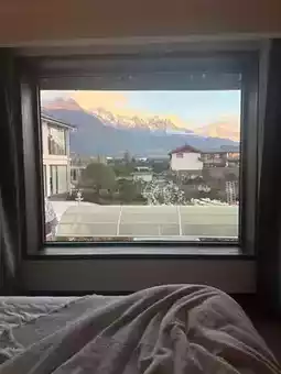 I stayed here for three days and two nights. Every morning, I didn't have to get up in a hurry. I could just lie comfortably in the soft bed and enjoy the magnificent view of the golden mountain at sunrise. The sun slowly shines on the snow-capped mountains, and the stunning beauty is unforgettable.