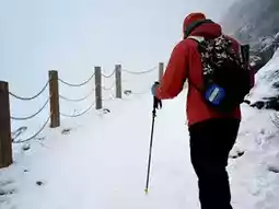 Climbing Niubei Mountain in Sichuan Province, China, during snowy weather is an unforgettable adventure. The mountain, known for its breathtaking views and steep trails, transforms into a winter wonderland with a blanket of snow. As you ascend, the crisp, cold air invigorates your spirit, and the surrounding landscape becomes a serene spectacle of white-draped trees and glistening rock formations.