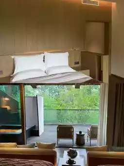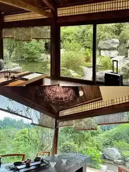 ✔ The rooms are a real highlight! Spacious and bright, with a full Zen style🎐 that perfectly matches the mountain forest environment. Open the window and the view is right there, like living inside a living landscape painting; even better is the private hot spring bath♨, soaking in warm water while gazing up at the mountains⛰, so relaxing you can forget all your worries.
