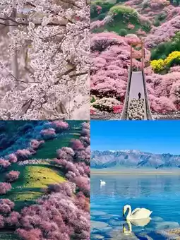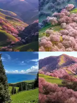 🎈April: This is the best time to see apricot blossoms in Yili. Apricot blossoms bloom all over the mountains and plains, white and pink, like walking into a fairy tale world. Especially the Turgen Apricot Blossom Valley, it's breathtakingly beautiful😍