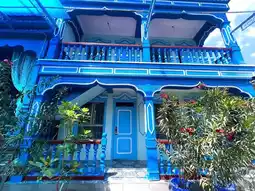 The homestay features an eye-catching blue-and-white color scheme that perfectly complements the clear autumn sky 💙. Every casual photo you take here looks like an unfiltered exotic masterpiece 📸! While the lush green grapevines of summer have faded, the golden vines now wrap around the wooden trellis, with sunlight filtering through to create dappled patterns 🌞. Sitting at the table under the trellis, surrounded by the gentle autumn breeze, sipping a cup of hot tea and daydreaming, time seems to slow down.